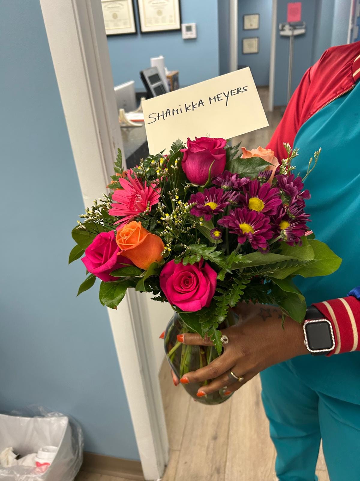 Ellie Flowers exclusive design with fresh roses and flowers.