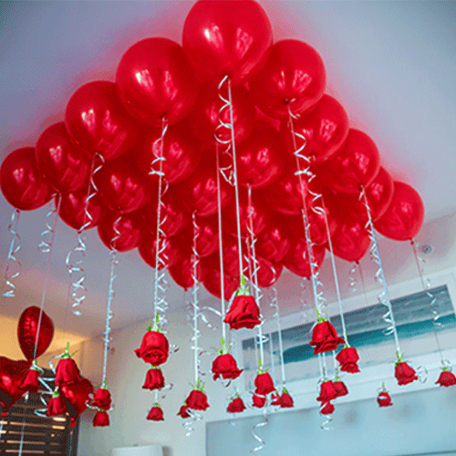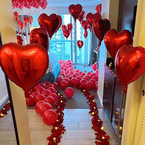- Helium-filled romantic balloons (we arrange to float with ribbon)