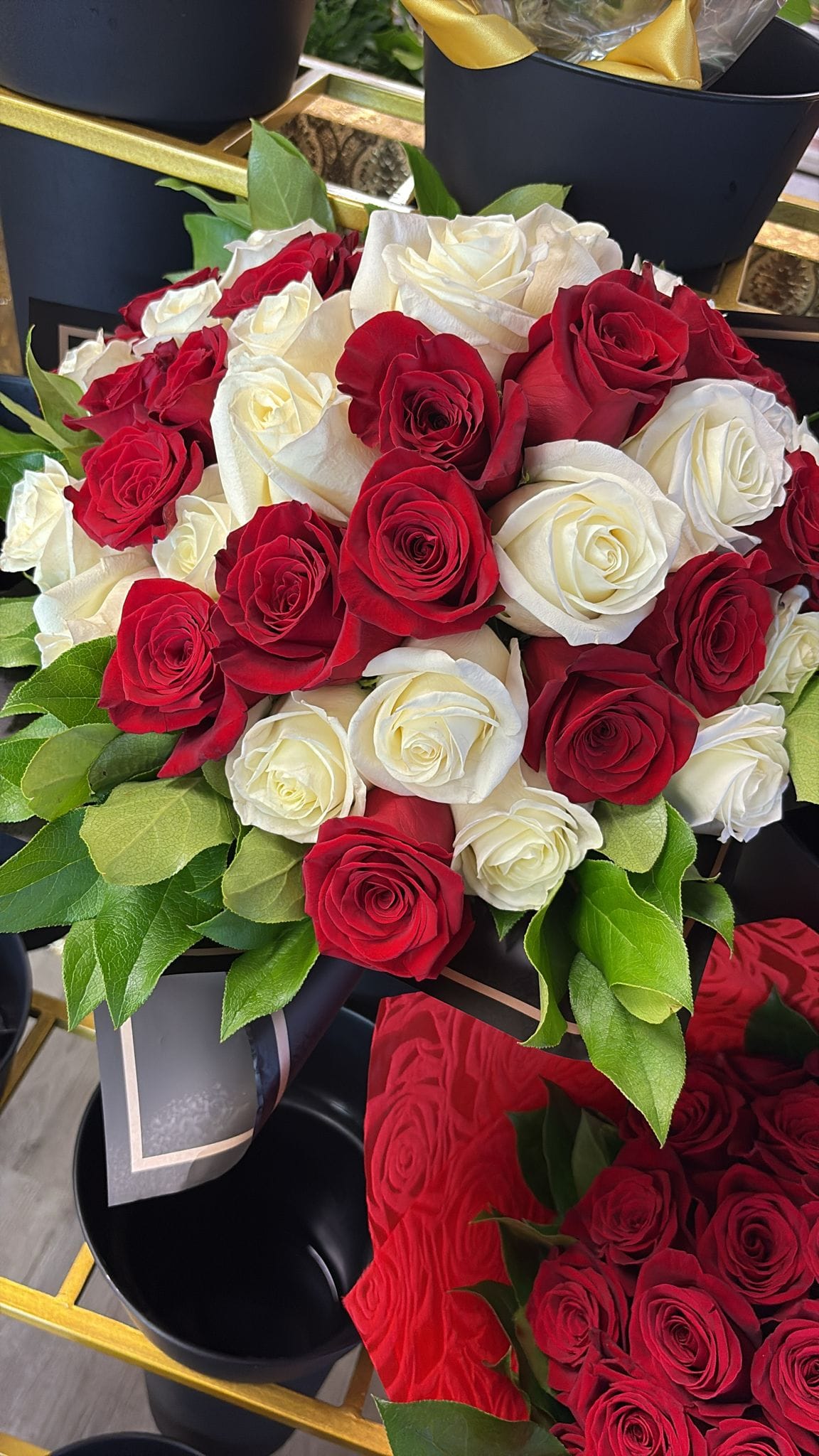 red, white, light pink, hot pink, yellow, dark purple, orange, mix colors florist choice.